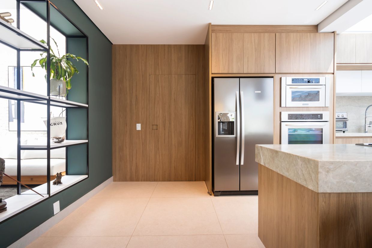 Um projeto contemporâneo com bastante madeira em tons naturais, serralheria, e dormitórios infanto-juvenis cheio de diversão na marcenaria. E detalhes que dão elegância e sofisticação como iluminação, painéis e portas mimetizadas.
